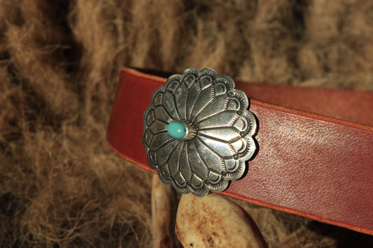 Columbine - Leather Hat Band with Vintage Native American Button with Turquoise
