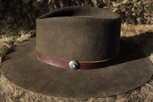 Gold Butte - Leather Hat Band with Vintage Native American Button with Turquoise
